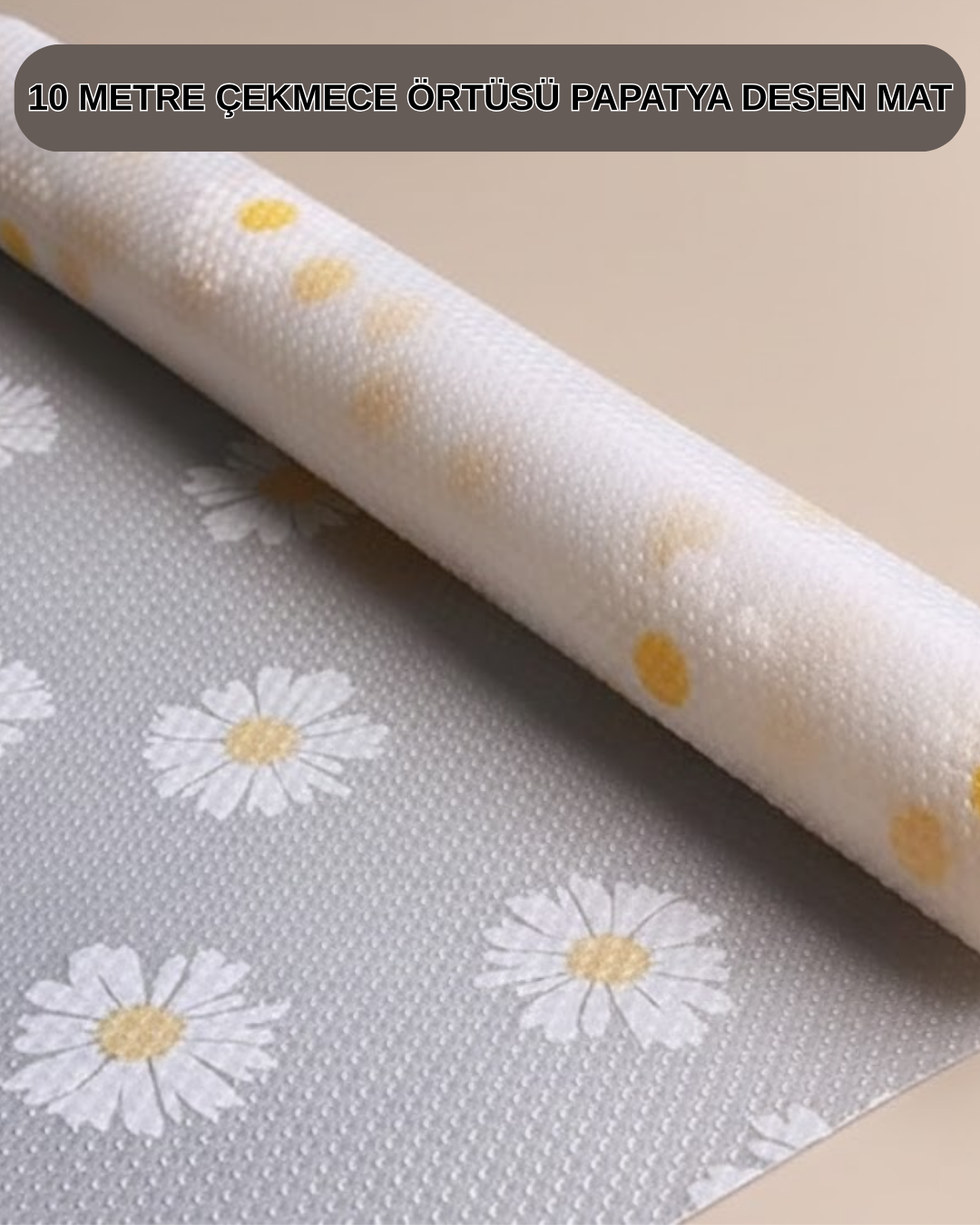 Papatya desenli bu çekmece ve dolap içi örtü, 10 metre uzunluğu ile çoklu kullanım imkânı sunar. Kesilerek farklı alanlarda kullanılabilir.