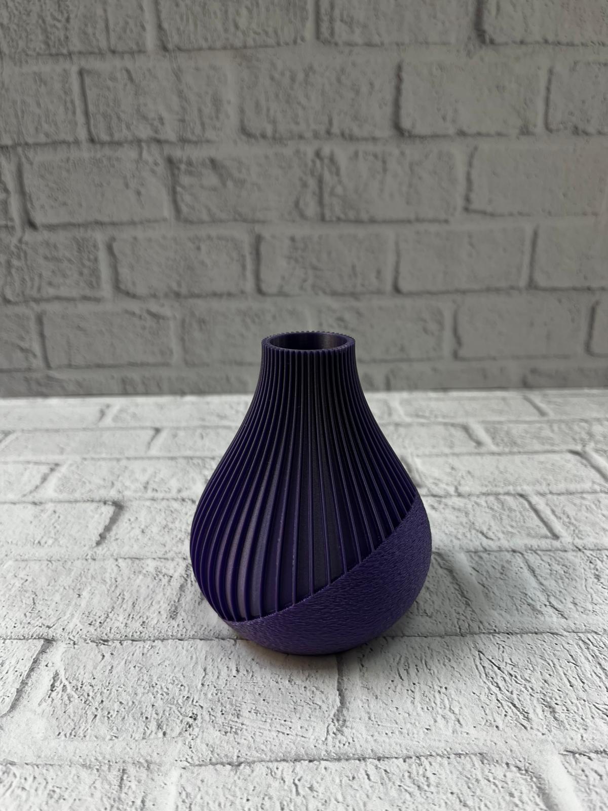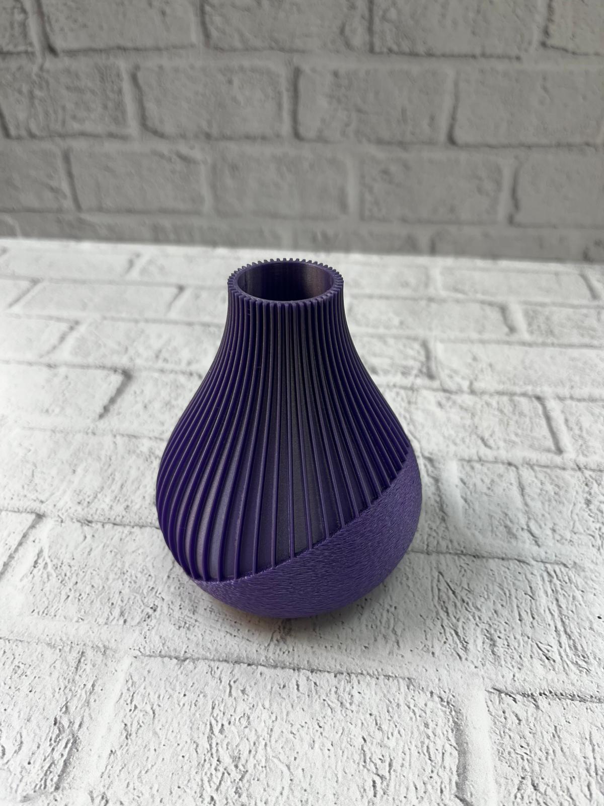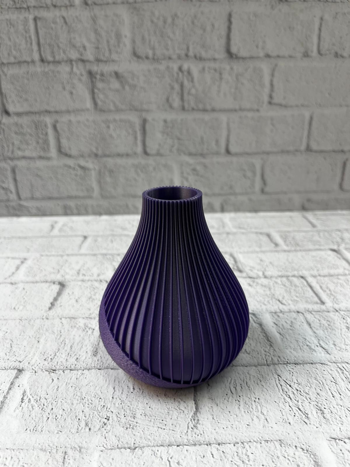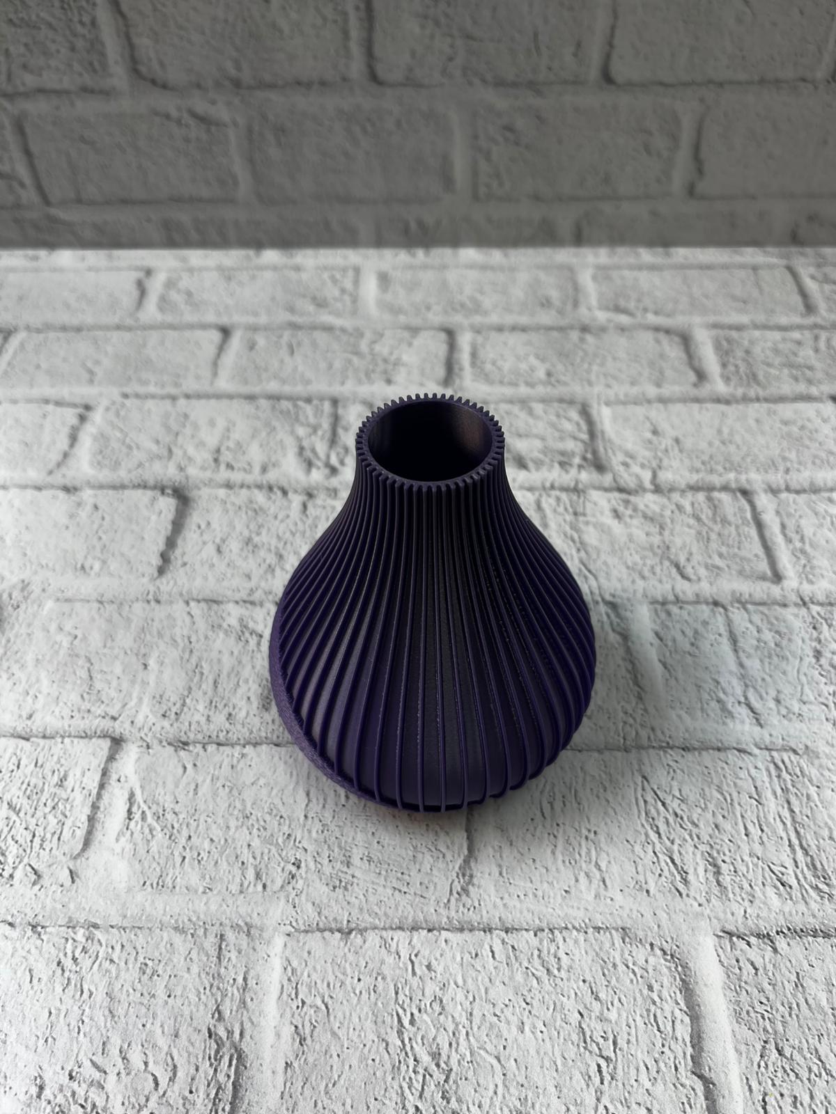 Derin mor tonlarıyla tasarlanan bu çizgili vazo, estetik duruşu ve modern formuyla her dekor stiline uyum sağlar. Şerit yapısı sayesinde dinamizm kazanan ürün, sade alanlara bile karakter katan bir görsel etki oluşturur. 11 cm’lik ideal boyutu, hem küçük hem büyük dekor kombinasyonlarında rahat kullanım sunar. Minimal dekor sevenler için mükemmel bir tamamlayıcıdır. Ev, ofis, kafe gibi alanlarda stilinizi yansıtmak için tercih edebileceğiniz özel bir parçadır.