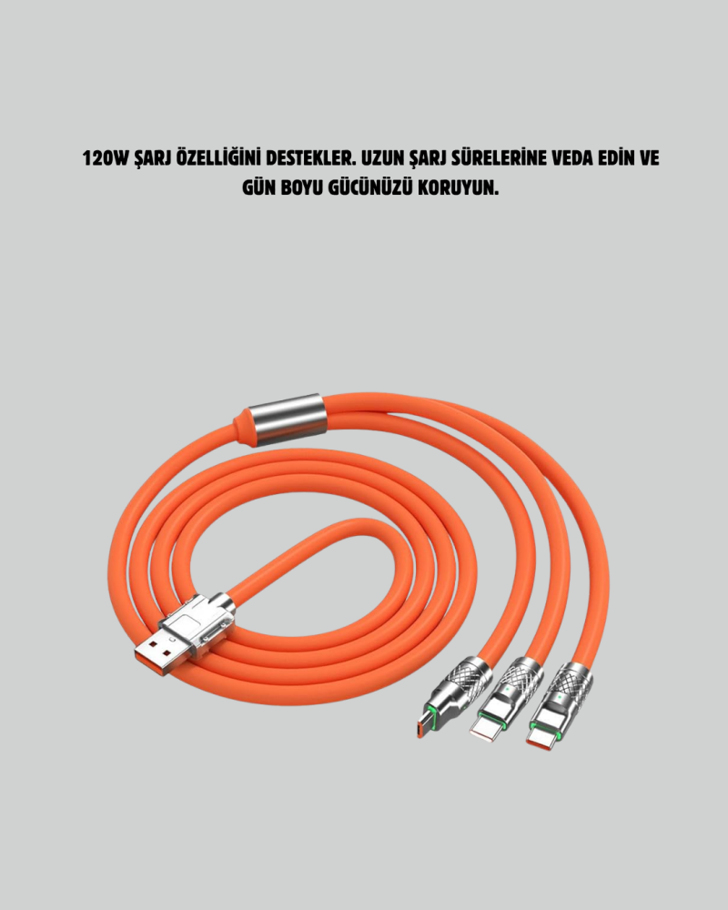 120 W Şarj ve Veri Aktarımı Kablo– 3 Başlıklı Çok Amaçlı Kablo Yüksek Hızlı