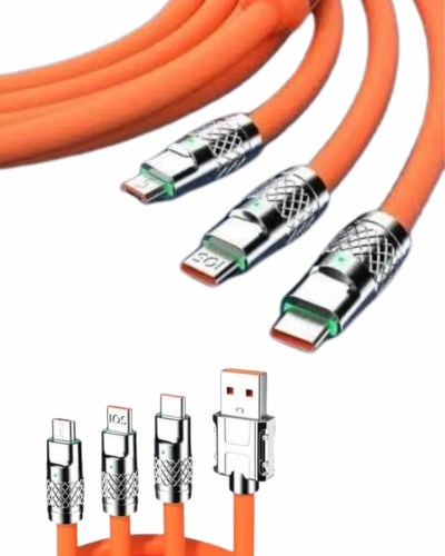 120W 3 İn 1 Uyumlu Silikon Şarj Kablosu Hızlı Şarj Kablosu