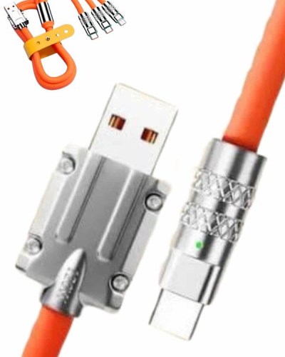 120W Süper Hızlı 6A Led Işıklı 3 Başlıklı Şarj ve Data Kablosu – Type-C / Micro USB / Lightning UyumluTek kablo ile tüm cihazlarınızı hızlı ve güvenli bir şekilde şarj etmek artık çok daha kolay. 120W güç kapasitesi ve 6A yüksek akım desteği sunan bu 3 başlıklı şarj kablosu; Type-C, Micro USB ve Lightning girişleriyle geniş uyumluluk sağlayarak mobil cihazlar arasında geçiş yaparken ekstra kablo taşıma derdine son verir.Uç kısımlarında yer alan yeşil LED indikatörler, şarj durumunu şık ve pratik bir şekilde görmenizi sağlarken, metal çinko alaşımlı dayanıklı başlık yapısı uzun ömürlü kullanım sunar. Akım korumalı yapısı sayesinde cihazlarınızı olası voltaj dalgalanmalarına karşı güvenle şarj edebilir, kalın ve sıvı silikon kaplamalı kablosu ile hem esneklik hem de kopmalara karşı üst düzey dayanıklılık elde edebilirsiniz.1.2 metrelik ideal uzunluğu ile hem masaüstünde hem de hareket halindeyken rahat kullanım sunan bu kablo, hem hızlı şarj hem de veri aktarımı işlemlerinizde güvenilir performans gösterir. Gelişmiş turbo hız teknolojisiyle zamanı en verimli şekilde kullanmanızı sağlar. Günlük kullanımda maksimum konfor ve yüksek hız arayanlar için mükemmel bir çözüm sunar.
