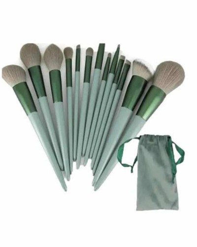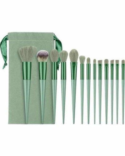 Makyaj Fırça Seti Yeşil 13 Parça Fondöten Fırçası Allık Fırçası Far Fırçası