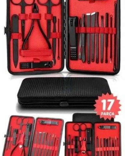 Profesyonel bakım deneyimini evinize taşıyan 17 parçalık bu özel manikür seti, el ve ayak bakımınızı zahmetsizce yapmanız için ihtiyacınız olan tüm araçları bir araya getiriyor. Paslanmaz çelikten üretilmiş parçaları sayesinde dayanıklı ve hijyenik bir kullanım sunan bu set, güvenli sterilizasyon sağlar, kolay temizlenir ve korozyona karşı dirençlidir. Yeni nesil siyah kaymaz parlatma teknolojisi ile geliştirilmiş keskin yapısı, kavramayı kolaylaştırarak daha rahat kullanım imkanı sunar. Şık deri kaplama kutusu, tek tuşla açılabilir ve tüm parçaların düzenli bir şekilde saklanmasını sağlar. Hafif ve taşınabilir tasarımıyla çantanızda rahatça taşıyabilir, seyahatlerde yanınızda bulundurabilirsiniz. Büyük, küçük ve sivri uçlu tırnak makasları, törpü, cımbız, pedikür bıçakları, tırnak kaldırma aparatı, kulak temizleme aparatı gibi birçok farklı aparat içeren bu set, hem günlük kullanım için ideal hem de mükemmel bir hediye seçeneğidir.