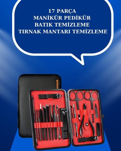 17 Parça El Ayak Bakım Seti Tırnak Temizleme Manikür Pedikür Cımbız Törpü Tırnak Makası