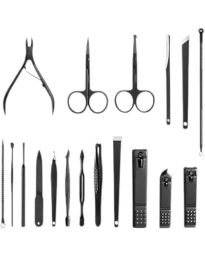 Özel tasarımıyla dikkat çeken bu 17 parçalık manikür seti, el ve ayak bakımınızı profesyonelce yapmanız için tüm gerekli malzemeleri bir araya getiriyor. Paslanmaz çelikten üretilmiş dayanıklı ve uzun ömürlü parçaları sayesinde güvenli sterilizasyon sağlar, kolay temizlenir ve korozyonu önleyerek hijyenik bir kullanım sunar. Yeni nesil siyah kaymaz parlatma teknolojisi ile üretilmiş keskin ve ergonomik tasarımı, kullanım kolaylığı ve estetik görünümü bir araya getirir.Şık ve sağlam deri kaplama kutusu sayesinde düzenli bir şekilde saklanabilir ve tek düğmeyle kolayca açılıp kapanabilir. Hafif ve taşınabilir yapısıyla çantanızda rahatça taşıyabilir, günlük kullanım veya seyahatlerinizde yanınızda bulundurabilirsiniz. Setin içeriğinde büyük, küçük ve sivri uçlu tırnak makasları, çift uçlu komedon, törpü, et ittirici, çift taraflı tırnak kaldırma aleti, makas, pedikür bıçakları, V şeklinde et itme aparatı, tırnak temizleme çubuğu, cımbız, iğneli komedon ve kulak temizleme aparatı bulunmaktadır.Her detayı düşünülerek tasarlanmış bu manikür seti, hem kendi bakımınızı pratik şekilde yapmanızı sağlar hem de sevdiklerinize hediye edebileceğiniz şık ve kullanışlı bir alternatif sunar.