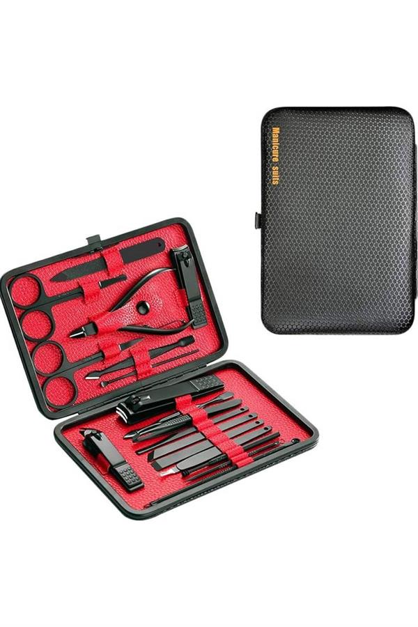 El ve ayak bakımınızı profesyonelce yapmanıza olanak tanıyan 17 parçalık bu özel manikür seti, paslanmaz çelikten üretilmiş dayanıklı ve uzun ömürlü aletlerden oluşur. Güvenli sterilizasyon sağlayan, kolay temizlenen ve korozyona karşı dayanıklı yapısıyla hijyenik bir kullanım sunar. Yeni nesil siyah kaymaz parlatma teknolojisi sayesinde keskinliği artırılmış olup, ergonomik tasarımı ile kavraması ve kullanımı son derece kolaydır. Şık ve sağlam deri kaplama kutusu, tek düğmeyle kolayca açılabilir ve hafif yapısı sayesinde çantanızda taşınabilir. Büyük, küçük ve sivri uçlu tırnak makasları, pedikür bıçakları, törpü, cımbız, kulak temizleme aparatı, tırnak temizleme çubuğu ve daha birçok farklı aparat içeren bu set, hem günlük kullanım hem de seyahatleriniz için ideal bir çözümdür. Hem kendiniz hem de sevdikleriniz için harika bir hediye alternatifi olacak bu set, bakım rutininizi tamamlamak için mükemmel bir yardımcıdır.