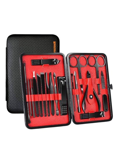 Özel tasarımıyla dikkat çeken bu 17 parçalık manikür seti, el ve ayak bakımınızı profesyonelce yapmanız için tüm gerekli malzemeleri bir araya getiriyor. Paslanmaz çelikten üretilmiş dayanıklı ve uzun ömürlü parçaları sayesinde güvenli sterilizasyon sağlar, kolay temizlenir ve korozyonu önleyerek hijyenik bir kullanım sunar. Yeni nesil siyah kaymaz parlatma teknolojisi ile üretilmiş keskin ve ergonomik tasarımı, kullanım kolaylığı ve estetik görünümü bir araya getirir.