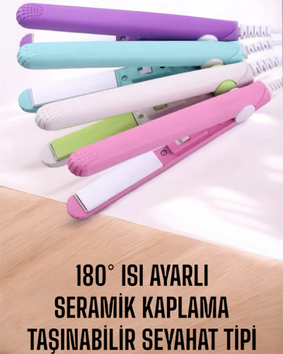 Seramik Kaplama ve Pratiklik Bir Arada – Mini Saç DüzleştiriciValize veya çantanıza kolayca sığan, sadece 16 cm uzunluğundaki bu mini saç düzleştirici, her an yanınızda taşıyabileceğiniz şıklığı ve fonksiyonelliği bir araya getiriyor. 180°C’ye kadar ısınabilen seramik kaplamalı plakaları sayesinde saçlarınızı yıpratmadan pürüzsüz bir görünüm sağlar. Elektriklenmeyi önleyen teknolojisi, özellikle seyahatlerde büyük avantaj sunar. Hızlı ısınma özelliği ve taşınabilir yapısı ile bu cihaz, güzellik rutininizi her yerde devam ettirmenize yardımcı olur.