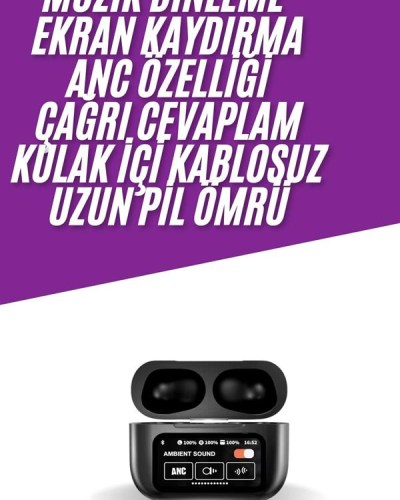 Dokunmatik OLED Ekran: Modern tasarımıyla birleşen dokunmatik ekran, kontrolü daha kolay ve şık hale getirir.Otomatik Açılır Pencere ve Hızlı Bağlantı: Cihazınıza yaklaştığında otomatik olarak açılan pop-up ekran ile anında bağlantı kurar.Yüksek Performanslı Batarya: Uzun süreli kullanım sağlayan güçlü batarya ile gün boyu kesintisiz müzik keyfi.Zengin Ses Deneyimi: Güçlü bass ve net seslerle her detayı hissedin.Akıllı Kontrol: Görev atama özelliği sayesinde kulaklık fonksiyonlarını kendinize göre özelleştirin.Müzik Paylaşımı: Müzik zevkinizi aynı anda bir başka kulaklıkla paylaşabilirsiniz.Kaybolmaya Son: Konum bul özelliği ile kulaklığınızı kolayca bulun.Arka Plan Sesleri: Odaklanmanıza veya rahatlamanıza yardımcı olacak doğal sesler desteklenir.Kablosuz Şarj: Kablolara veda edin; şarj işlemini kablosuz ve pratik şekilde gerçekleştirin.Evrensel Uyumluluk: Tüm akıllı telefonlarla sorunsuz şekilde uyum sağlar.Kulakiçi Akıllı Sensörler: Kulaklık takıldığında otomatik olarak müziği başlatır, çıkardığınızda durdurur.Powerbank Şarj Kutusu: Şarj kutusu aynı zamanda acil durumlarda cihazlarınızı şarj edebileceğiniz taşınabilir bir powerbank’tir.