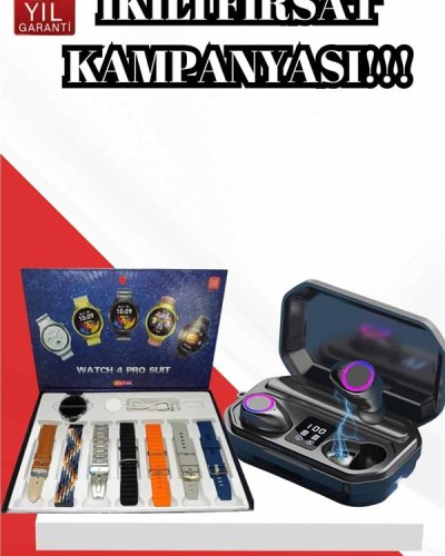 KULAKLIK:Kablosuz kulaklıklar, müzik dinlemek ve oyun oynamak için ideal bir tercih sunar. Bluetooth 5.0 teknolojisi, hızlı bağlantı kurma ve uzun menzil sunma avantajı sağlar. Ayrıca, şık ve canlı tasarımı ile modern bir görünüm sergiler. Hem mobil cihazlar hem de bilgisayarlarla uyumlu olan bu kulaklık, yüksek aktarım hızları ve düşük gecikme süreleri sayesinde dizi, film ve oyunlarda ses senkronizasyonunu optimize eder.Dahili mikrofonu, online toplantılar ve telefon görüşmeleri için mükemmel bir çözüm sunar. Uzun pil ömrü ve pratik şarj imkanıyla kesintisiz müzik keyfi sağlar. Bluetooth kulaklık, 4 saate kadar kullanım süresi sunarken, düşük enerji tüketimiyle kullanım dışı kaldığında da tasarruf sağlar. Bağlantı kesildiğinde, taşıma kutusuna yerleştirildiği anda otomatik şarj olur.Her bir kulaklığın üst yüzeyindeki dokunmatik ekran sayesinde müziği başlatabilir, durdurabilir, gelen çağrıları cevaplayabilir ve sonlandırabilirsiniz. Dahili mikrofon, gürültülü ortamlarda bile sesinizi net bir şekilde algılar. Gürültü engelleme özelliği sayesinde, hem konuşmalar sırasında çevresel gürültüyü filtreler hem de müzik dinlerken dış ortam seslerini engeller.AKILLI SAAT:Günlük aktivitelerinizi takip etmek ve sağlıklı yaşam hedeflerinize ulaşmak için tasarlanan bu akıllı saat, hayatınızı kolaylaştıran birçok özellikle donatılmıştır. Adımsayar özelliği, hareketlerinizi hassas bir şekilde kaydederek aktif kalmanıza destek olurken, sesli görüşme fonksiyonu sayesinde telefonunuza dokunmadan çağrılarınızı yanıtlayabilir ve konuşmalarınızı rahatça gerçekleştirebilirsiniz. Gelen bildirimleri, alarmları ve önemli uyarıları kaçırmamanız için titreşim fonksiyonu devreye girer, böylece her zaman bağlı kalırsınız. GPS özelliği ile konumunuzu hassas bir şekilde belirleyerek, navigasyon ihtiyaçlarınızı en pratik şekilde karşılar. Güçlü 300-400 mAh batarya kapasitesi, uzun süreli kullanım imkanı sunarak gün boyu size eşlik eder. İthalatçı garantisi altında 2 yıl boyunca güvenle kullanabileceğiniz bu saat, uyku takibi özelliğiyle uyku düzeninizi analiz eder ve daha kaliteli bir uyku için gerekli adımları atmanıza yardımcı olur. Dahili nabız sensörü sayesinde kalp atış hızınızı sürekli olarak takip edebilir ve sağlık verilerinizi kontrol altında tutabilirsiniz. Bu akıllı saat, hem teknoloji hem de sağlık açısından hayatınızı zenginleştiren bir deneyim sunar.
