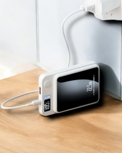 iOS uyumlu dijital göstergeli bu powerbank, 22.5W hızlı şarj kapasitesi ve 10.000 mAh bataryası ile telefonunuzu veya diğer cihazlarınızı şarj ederken sizi asla yarı yolda bırakmaz. Kablosuz Magsafe özelliği sayesinde kablo karmaşasından kurtulun. Minimal ve ergonomik tasarımı sayesinde seyahatlerinizde veya günlük yaşamınızda mükemmel bir yardımcıdır.