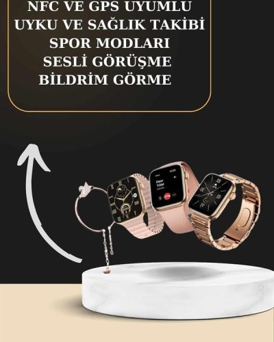 AKILLI SAATYeni Nesil Mini Kadın Akıllı Saat, şıklığı ve fonksiyonelliği bir araya getiren tasarımıyla kadınlar için ideal bir seçenek sunuyor. Almanya üretimi ultra dayanıklı model, özel wireless şarj özellikleriyle öne çıkıyor ve Türkçe menüsü sayesinde kullanıcı dostudur. Kutu içeriğinde, mini akıllı saat, 3 farklı kordon, hediye bileklik, wireless şarj kablosu ve kullanım kılavuzu bulunmaktadır. Şık pembe kutusu, hediye olarak tercih edilmesini sağlayan bir özellik taşır. 41 mm kavisli oval kenarlı yeni tasarımı ve 1,70 inç AMOLED ekranı ile yüksek çözünürlükte HD görüntü sağlar.Saat, nabız ölçer, uyku izleyici, kan basıncı, tansiyon, EKG ve vücut sıcaklığı ölçer gibi sağlık izleme özellikleriyle sağlığınızı takip etmenizi sağlar. 117 farklı spor modu ve adım, kalori, kalp ritmi ölçme gibi özellikler ile aktivite takibini oldukça detaylı yapabilirsiniz. Ayrıca akıllı hatırlatıcılar sayesinde su içme ve hareketsizlik gibi hatırlatmalar alabilir, tüm bildirimleri ve mesajları anında saatinizde görebilirsiniz.Bluetooth bağlantısı ile yüksek kaliteli müzik dinleyebilir ve uzaktan fotoğraf çekme özelliği ile fotoğraflarınızı kolayca çekebilirsiniz. Suya dayanıklı yapısı, günlük kullanımda sıklıkla tercih edilmesini sağlar; ancak deniz ve havuz gibi basınçlı suya karşı su geçirmez.Saatin sunduğu diğer özellikler arasında Türkçe ve çoklu dil desteği, saatimi bul, telefonumu bul, alarm, kronometre, hava durumu, hesap makinesi gibi fonksiyonlar bulunur. Kordonu değiştirilebilir, bu sayede kişisel tercihlere göre tasarımı özelleştirilebilir. 24 ay garanti süresi ile kullanıcılarına güvenli bir deneyim sunar.KULAKLIKkulak içi Pro kulaklık, özel dizaynı sayesinde kulağa tam oturarak sesleri net bir şekilde duymanıza yardımcı olur. Alerji yapmayan ve rahatsızlık hissini engelleyen yapısı ile konforlu bir kullanım sunar. iOS ve Mac uyumlu olan bu kablosuz Bluetooth kulaklık, dokunmatik sensörleri sayesinde parmak dokunuşlarıyla kolayca yönetilebilir. Uzun süre dayanan pil gücü ile kesintisiz bir deneyim sağlarken, gürültü önleyici özelliği sayesinde dış mekan konuşmalarında karşı tarafa temiz ve net bir ses iletir. Mikrofonu, uzak mesafelerden dahi sesleri algılayarak kaliteli bir iletişim imkanı sunar. Beyaz renkli ve şık tasarıma sahip model, suya ve toza dayanıklı yapısıyla günlük kullanımda güvenli bir tercih oluşturur. Dokunmatik kontrol özelliği ile müzik geçişlerini kolayca yapabilir, İOS telefonlarla tam uyumluluk sağlayarak sorunsuz bir bağlantı deneyimi yaşayabilirsiniz.