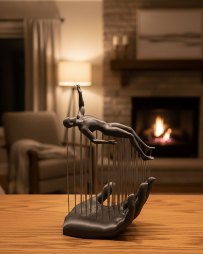 Modern sanat anlayışını yansıtan 3D El Formlu İnsan Figürü Gri, dekorasyona sofistike bir dokunuş ekler. El formu üzerinde konumlanan insan figürü, soyut duruşu ile anlamlı ve estetik bir kompozisyon oluşturur.