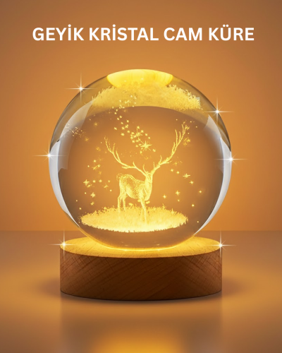 Kristalin içindeki geyik deseni yüksek hassasiyetli 3D lazer işlemeyle hazırlanmıştır. Bu teknoloji sayesinde desen son derece net, parlak ve gerçekçi görünür. Gün ışığı ya da sıcak LED aydınlatma ile desteklenen ışık efekti, kristal kürenin her köşesini canlı şekilde ortaya çıkarır. Hem gece lambası hem dekoratif sanat objesi olarak fark yaratan bir tasarımdır.