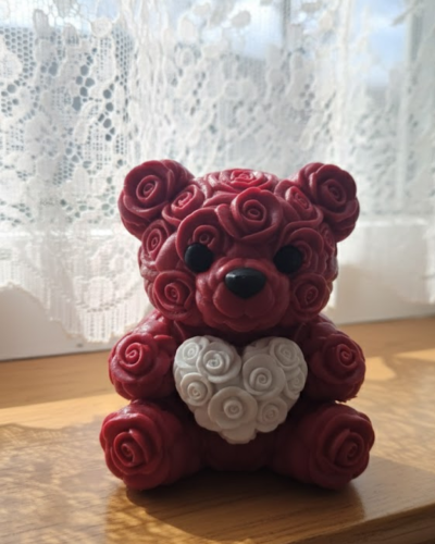 10 cm boyutundaki bu kalp ayıcık, 3D baskı teknolojisi ile üretilmiş şık bir dekoratif objedir. Gül kabartmaları ürüne zengin bir görünüm kazandırır. Göğsünde taşıdığı kalp figürü ile sevgi temasını güçlü şekilde yansıtır.