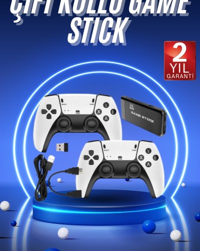 Çift Oyun Kollu 4K HD Ekran Nostaljik 20.000 Oyunlu Beyaz Game Stick