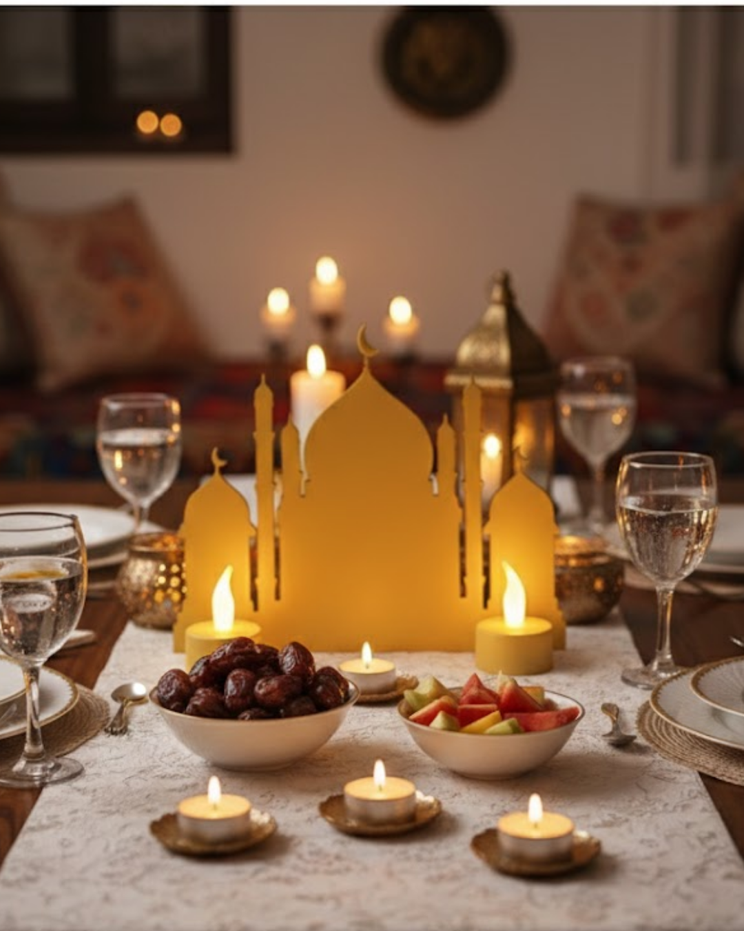 3D İki Mumlu Cami Dekor, Ramazan ayının huzurlu atmosferini evinize taşımak için tasarlanmış şık ve anlamlı bir dekoratif üründür. Ürün ile birlikte 2 adet pilli LED mum hediye olarak gönderilmektedir.