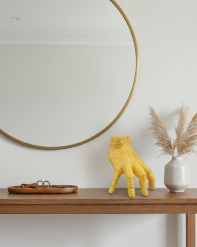 3D Modern Sarı El Biblo 17×16 cm, sıradan aksesuarların ötesine geçmek isteyenler için tasarlanmıştır. Sanatsal formu ve detaylı yüzey yapısı sayesinde bulunduğu ortamda sofistike bir vurgu oluşturur.