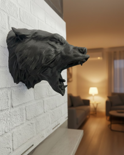 Bu özel tasarım siyah ayı başı heykeli, üç boyutlu etkileyici yapısı sayesinde bulunduğu alana anında karakter katar. 25×19 cm ölçülerindeki bu dekor ürün, güçlü yüz hatları ve detaylı işçiliği ile dikkat çeker. Siyah mat yüzeyi, modern dekor anlayışıyla mükemmel uyum sağlar.