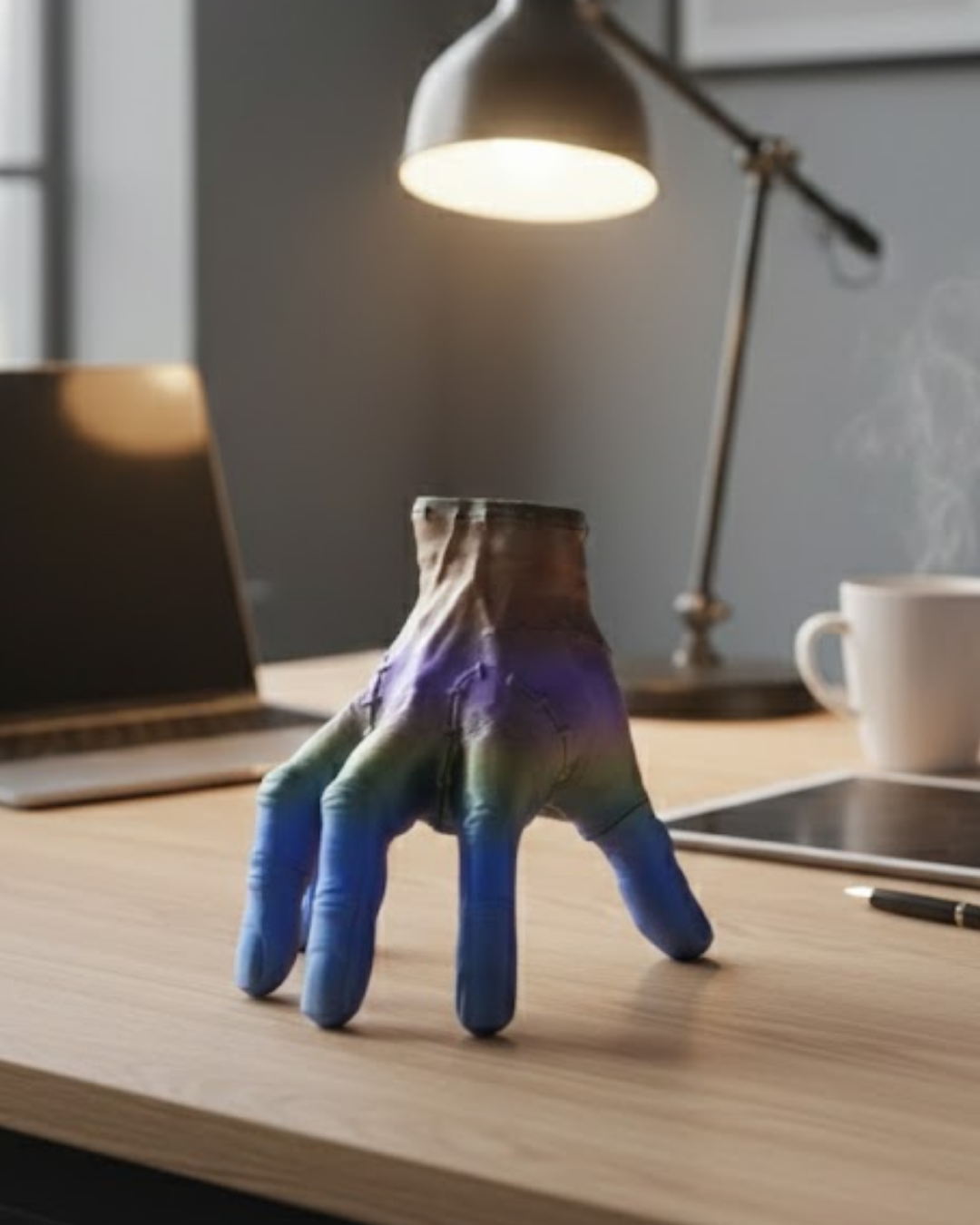 3D Tasarım Rengarenk El Biblo 27×22 cm, sıradan dekoratif ürünlerden farklı olarak güçlü ve dinamik bir görünüm sunar. Renk geçişli tasarımı ürünü eşsiz kılar.