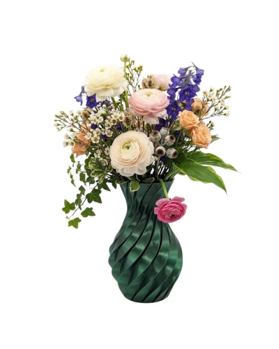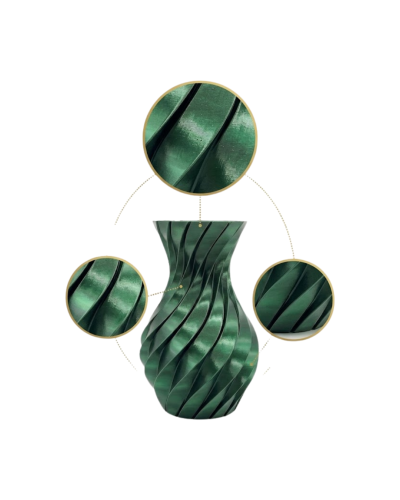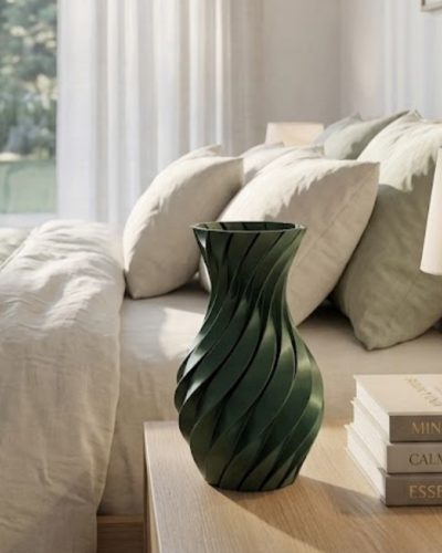 Yaşam alanlarında estetik ve özgün detaylara yer vermek isteyenler için tasarlanan spiral yeşil 3D vazo, modern tasarım anlayışını yansıtan dikkat çekici bir dekoratif üründür. Kıvrımlı ve akıcı yapısı sayesinde bulunduğu ortama hareket ve derinlik kazandırır. Parlak yüzeyi ışığı yansıtarak farklı açılardan farklı görünümler oluşturur ve bu sayede bulunduğu ortamda canlı bir etki yaratır.