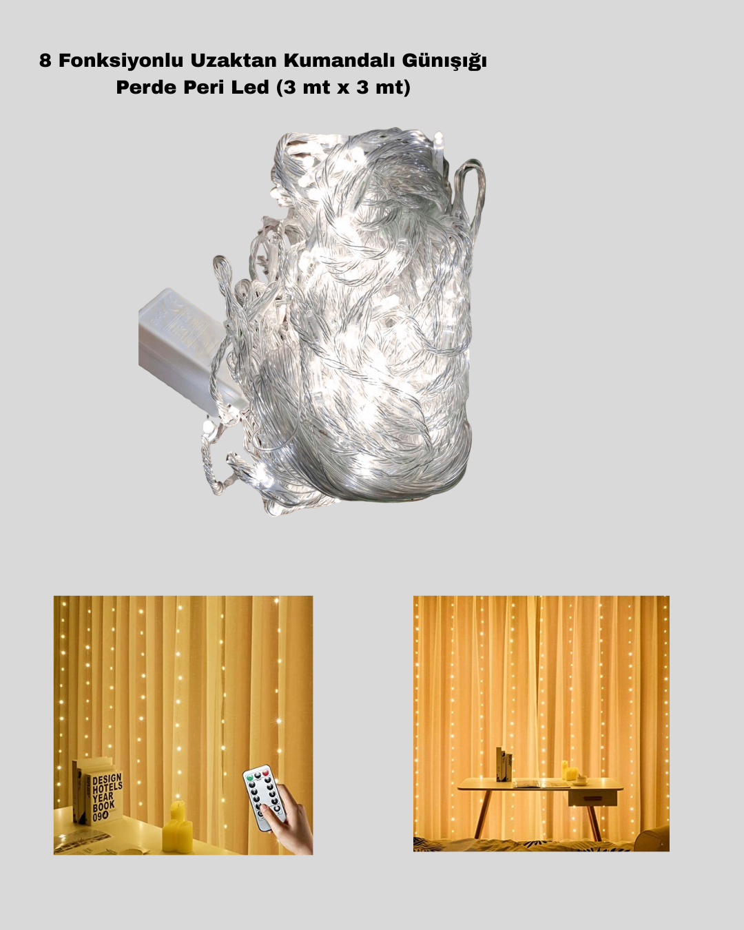 USB Girişli Uzaktan Kumandalı Günışığı Saçak Perde Led, modern dekorasyon anlayışına uygun tasarımı ile yaşam alanlarınıza şıklık katar. Günışığı tonundaki ışıkları, ortamda doğal ve sıcak bir atmosfer oluşturur.