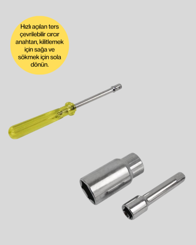 Set içerisinde bulunan hızlı açılan ters çevrilebilir cırcır anahtar, kullanım sırasında zaman kazandırır. Sağ yöne çevrildiğinde kilitleme, sol yöne çevrildiğinde ise sökme işlemi yapılabilir. Bu mekanizma, tek el ile rahat kullanım sağlar ve dar alanlarda çalışmayı kolaylaştırır. Hassas diş yapısı sayesinde vida ve somunları sıyırmadan güvenli bir şekilde sıkma ve sökme imkanı sunar.