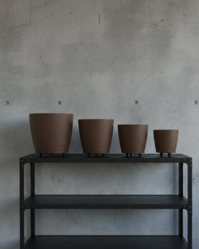 Ayaklı tasarımı sayesinde klasik saksılardan ayrılarak modern bir siluet oluşturur. Büyükten küçüğe doğru sıralanan formu dekoratif bir ritim yaratır. Raf, masa ya da zemin üzerinde kullanıldığında dengeli bir kompozisyon sunar.