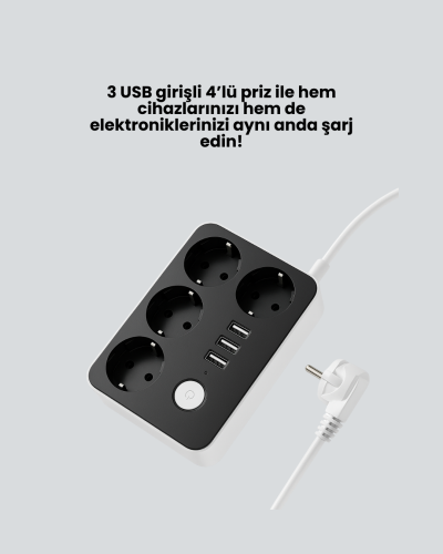 3 USB Portlu Üçlü Priz CXE103