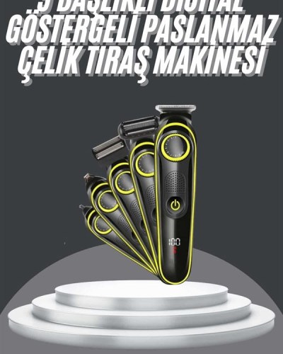 5 Başlıklı Şarjlı Tıraş Makinesi Led Ekran Saç Sakal Ense Tıraşına Uygun Bakım Seti
