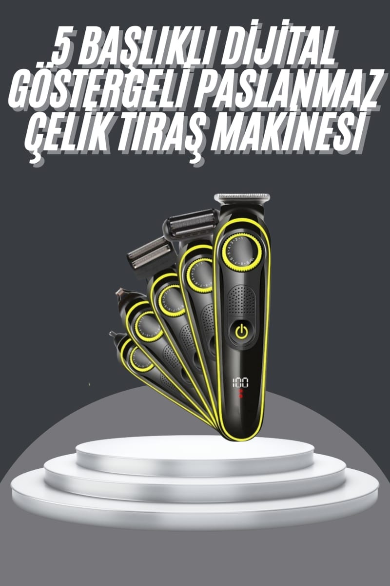 5 Başlıklı Şarjlı Tıraş Makinesi Led Ekran Saç Sakal Ense Tıraşına Uygun Bakım Seti