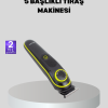 Bu şarjlı tıraş makinesi, kişisel bakımda profesyonel sonuçlar sunmak üzere tasarlandı. 5 farklı başlığı sayesinde saç, sakal, burun ve kulak kıllarını kolayca kesebilir, yüz hatlarınızı detaylıca şekillendirebilirsiniz. Güçlü motoru sayesinde takılma veya çekme olmadan pürüzsüz bir kesim sağlar. Paslanmaz çelik bıçakları uzun ömürlüdür ve cilde zarar vermez. Kablosuz kullanım özelliğiyle hareket özgürlüğü sunar; tam şarjla uzun süreli performans elde edilir. LED göstergesi sayesinde pil durumunu kolayca takip edebilirsiniz. Ayarlanabilir tarak başlıkları, farklı uzunluk seçenekleriyle kişisel tarzınıza uygun sonuçlar sağlar. Ergonomik tutuşu elinizde konforlu bir kullanım deneyimi sunar. Suya dayanıklı başlıklar kolay temizlenebilir. Evde, seyahatte veya spor sonrasında pratik bakım için mükemmel bir çözümdür.