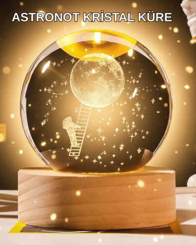 3D Astronot Kristal Küre Lamba, uzay temasını seven herkes için tasarlanmış özel bir dekoratif objedir. 5 cm çapındaki kristal küre içerisinde lazerle işlenmiş astronot figürü, ışık açıldığında kristalin içinde parıldayarak adeta gerçek bir uzay sahnesi hissi verir. Ahşap tabanlı LED ışık sistemi düşük güç tüketimine sahip olup uzun süreli aydınlatma sağlar. USB ile çalışması sayesinde ev, ofis, çalışma masası veya çocuk odalarında rahatlıkla kullanılabilir. Gece lambası olarak yumuşak bir aydınlatma sunar ve özellikle çocuklar için güven verici bir ortam oluşturur. Yetişkinler için ise dekoratif ve ilham veren bir obje görevi görür. Uzay bilimleri, astronomi veya bilimkurgu temalarına ilgi duyan kişiler için mükemmel bir hediye alternatifi sunar. Hem modern hem minimal tasarımıyla her yaşam alanında rahatlıkla sergilenebilir. Ürün, kristal küre ve ahşap tabanı ile birlikte kutulu şekilde gönderilir. Uzun ömürlü, kaliteli ve etkileyici yapısıyla göz doldurur.