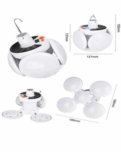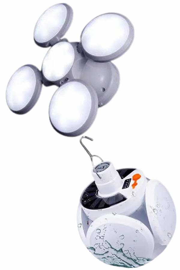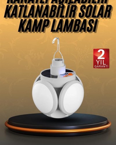 Solar Güneş Enerjisi ve USB Şarjlı 5 Kanatlı Taşınabilir Lamba – Çok Fonksiyonlu, Su Geçirmez ve Enerji Verimli AydınlatmaAçık hava etkinliklerinde, kamp gezilerinde veya acil durumlarda kullanabileceğiniz mükemmel bir taşınabilir aydınlatma çözümü arıyorsanız, Solar Güneş Enerjisi ve USB Şarjlı 5 Kanatlı Lamba tam size göre! Bu pratik lamba, güneş enerjisi ile şarj olabileceği gibi, USB ile de kolayca şarj edilebilir ve her koşulda güvenilir bir ışık kaynağı sunar.5 kanatlı tasarımı, ışığın yayılmasını etkili bir şekilde sağlayarak geniş alanları aydınlatmanızı mümkün kılar. Katlanabilir yapısı sayesinde ışık açısını ihtiyacınıza göre ayarlayabilirsiniz. Böylece karanlık alanlarda daha geniş bir alanı rahatlıkla aydınlatabilirsiniz.Güneş paneli ile doğa dostu bir enerji kaynağı kullanabileceğiniz gibi, USB ile şarj etme seçeneği de sunan bu lamba, her ortamda pratik kullanım imkânı sağlar. Solar şarj ile çevreye duyarlı bir şekilde enerji elde ederken, USB şarj özelliği sayesinde hızlı ve pratik bir şekilde enerji depolayabilirsiniz.Su geçirmez IP65 özelliği, dış mekanlarda kullanım için ekstra dayanıklılık sunar. Yağmurda veya nemli koşullarda bile güvenle kullanılabilir. Ürün, 45 LED ışık kaynağı ile karanlık ortamlarda yüksek kaliteli ışık sağlar ve 6500K renk sıcaklığı ile net ve parlak bir aydınlatma sunar.Teknik Özellikler:Güneş Paneli: 5.5V polikristal silikon güneş paneliPil: 18650 lityum pil, 2400mAhIşık Kaynağı: 45 LEDÇalışma Süresi: 6-8 saatŞarj Süresi: Solar şarj için 8 saat / USB şarj ile 6 saatŞarj Yöntemi: Solar şarj (DC 3.5V) / USB şarj (voltaj 4.5V)Su Geçirmezlik: IP65Renk Sıcaklığı: 6500KÜrün Boyutu: 14 cm * 11.5 cmPaket İçeriği:1 Adet 5 Kanatlı Solar Pratik LambaAcil durumlarda, kamp gezilerinde veya açık hava etkinliklerinde güvenle kullanabileceğiniz bu solar lamba, size her zaman güvenli, verimli ve çevre dostu bir ışık kaynağı sunar. Hem güneş enerjisiyle hem de USB ile şarj edilebilen bu pratik aydınlatma aracı, her koşulda size yardımcı olur.