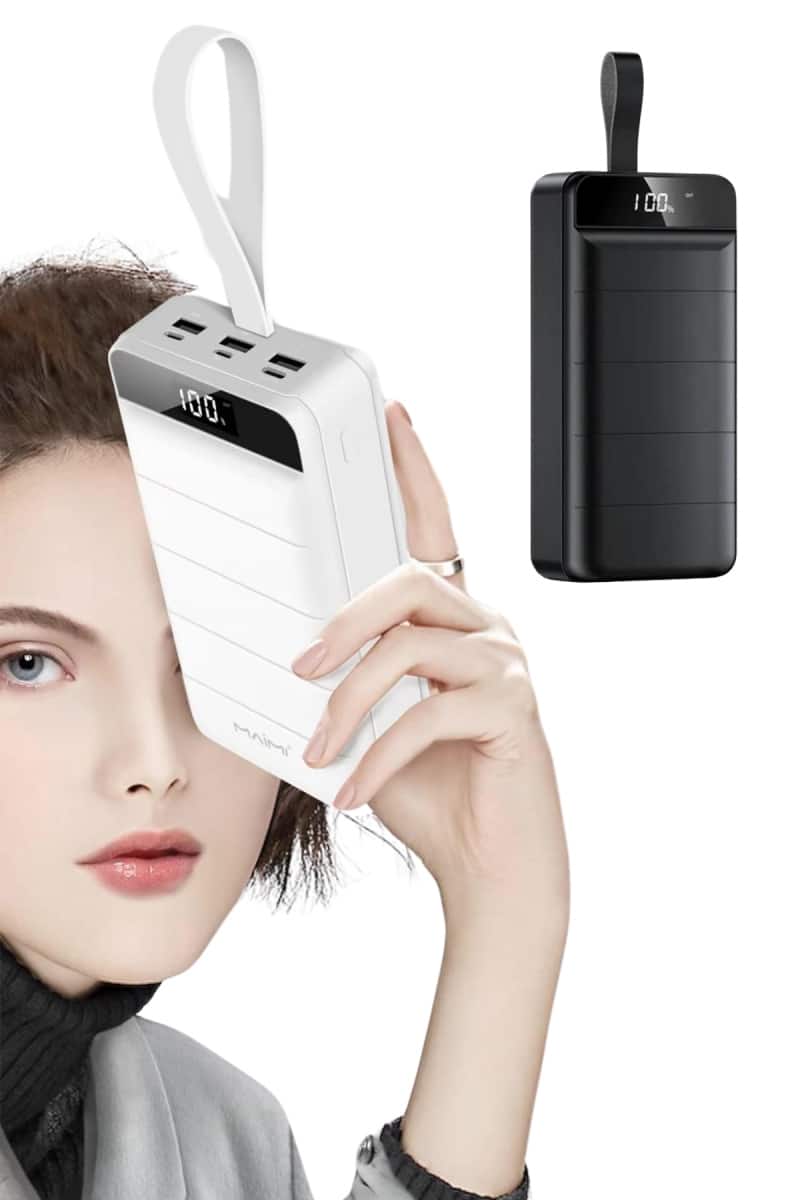 Her an yanınızda taşıyabileceğiniz bu ultra kapasiteli 50000mAh powerbank, günlük ihtiyaçlarınızı fazlasıyla karşılayacak güçte tasarlandı. Üç farklı giriş türü – iOS lightning, Android micro USB ve Type-C – ile geniş uyumluluk sunarak tüm cihazlarınızı tek bir ürünle kolayca şarj etmenizi sağlar (DC 5V/2A).