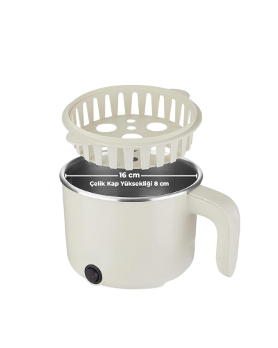 1 litre kapasiteye sahip olan bu elektrikli pişirici, özellikle küçük mutfaklar, öğrenci evleri, ofis kullanımı ve pratik yemek hazırlamak isteyen kullanıcılar için oldukça ideal bir çözümdür. Tek cihaz ile çorba, pilav, makarna, sebze yemekleri ve yumurta haşlama gibi birçok farklı yemek hazırlayabilirsiniz. Ayrıca cihaz ile birlikte gelen buharda pişirme tepsisi sayesinde sebzeleri sağlıklı bir şekilde buharda pişirmek de mümkündür.