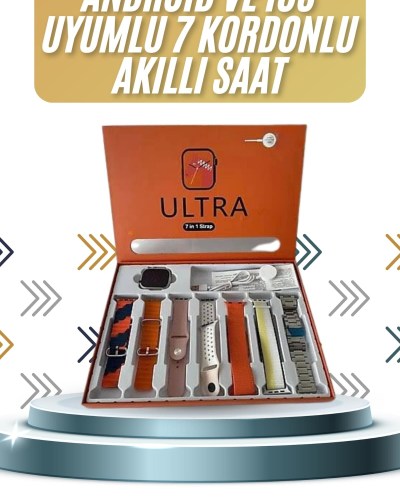 7 Kordonlu Akıllı Saat Plastik Kordon Hasır Kordon Çelik Kordon