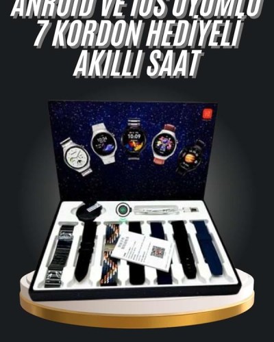 7 Kordonlu Akıllı Saat Siyah Kasa Dokunmatik Ekran Uyku ve Sağlık Takibi