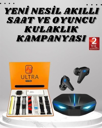 AKILLI SAAT Tam Uyumlu Dokunmatik Kare Akıllı Saat, 2.09 inç HD IPS ekranıyla üstün bir görüntü deneyimi sunarak net ve canlı bir kullanım sağlar. Bildirimlerinizi takip edebilir, arama yapabilir ve bunları doğrudan saat üzerinden gerçekleştirebilirsiniz. Sesli görüşme özelliği, çağrı almayı ve sonlandırmayı pratik hale getirerek telefonu cebinizden çıkarmadan iletişim kurmanıza olanak tanır. Android ve iOS cihazlarla tam uyumluluk sağlayan bu akıllı saat, günlük yaşamınızı kolaylaştırmak için geliştirilmiştir. Toza ve suya dayanıklı tasarımı sayesinde her türlü hava koşulunda güvenle kullanabilirsiniz. Uyku takibi, kalori ölçümü ve çoklu spor modu gibi özellikleri ile sağlığınızı ve aktivitelerinizi anlık olarak takip etmenizi sağlar. Üst düzey Bluetooth bağlantısı, müzik çalma ve uzaktan kontrol imkânı sunarak eğlencenizi artırır. Farklı yedi kordon seçeneğiyle modern, sportif ve klasik tarzlara uyum sağlayarak stilinize özel bir görünüm kazandırır. 49 mm gövde ve 2 inç geniş ekran, maksimum verimlilik ve rahat bir kullanım sunarken, yüksek kapasiteli polimer pili ile uzun süreli performans sağlar. Ayrıca, kan basıncı ve nabız ölçer özelliği sayesinde sağlık takibinizi yapabilir, Bluetooth araması, özel numara arama, kronometre, parlaklık ayarı, uzaktan fotoğraf çekme, hava durumu takibi ve telefon bulma gibi birçok ek fonksiyonla günlük hayatınızı daha pratik hale getirebilirsiniz. Hem işlevselliği hem de şık tasarımıyla akıllı saat deneyiminizi bir üst seviyeye taşıyan bu model, her yaşam tarzına uygun bir kullanım sunar. KULAKLIK K55 TWS Bluetooth Kulak İçi Oyuncu Kulaklığı, gelişmiş özellikleri ile oyun ve müzik deneyimini üst seviyeye taşıyor. Dokunmatik kontrol özelliği sayesinde kolay kullanım sunarken, taşınabilir medya oynatıcı, cep telefonu ve oyun cihazlarıyla gecikmesiz bir ses deneyimi yaşatır. Süper 3D ses kalitesi, oyun ve müzikte daha derin ve etkileyici bir performans sağlar. Uzun pil ömrüyle tek bir şarjda 4-5 saate kadar kullanım sunan kulaklık, powerbank özellikli şarj kutusu sayesinde defalarca şarj edilebilir. Aktif gürültü iptali sayesinde dış ortam seslerini engelleyerek, birden fazla boyuttaki kulak tıkacıyla konforlu bir kullanım sağlar. Spor ve egzersiz sırasında rahatça kullanabilir, kulaklığınızın sabit kalmasını sağlayabilirsiniz. Otomatik bağlanma özelliği ile kulaklıkları şarj kutusundan çıkardığınızda telefonunuza hızlıca bağlanır. Kararlı sinyal ve düşük gecikme süresi ile kesintisiz bir oyun deneyimi sunar. Mikrofondaki -33 ms gecikme ve SBC/AAC çift kod teknolojisi, oyun sırasında sesin senkronizasyonunu koruyarak daha akıcı bir deneyim yaşatır. IPX5 su geçirmezlik seviyesi, kulaklığı su sıçramalarına ve tere karşı dayanıklı hale getirir. Type-C şarj portu sayesinde hızlı ve kolay bir şekilde şarj edilebilir. K55 modelinin teknik özellikleri arasında Bluetooth 5.0 bağlantısı, 40mAh kulaklık pili, 400mAh şarj kutusu kapasitesi, 6mm hoparlör boyutu, 20Hz-20kHz frekans yanıtı ve 105dB hassasiyet yer alır. 10 metreye kadar Bluetooth menzili sunan model, binoral çağrı desteği ile net ve kaliteli sesli görüşmeler yapmanıza da imkan tanır. Kulaklık, yaklaşık 45 dakikada tam şarja ulaşırken, şarj kutusu 1.2 saat içinde tamamen şarj edilebilir. 4 gram ağırlığındaki kulaklıklar hafif yapısıyla uzun süreli kullanımlarda konfor sunarken, 64 gram ağırlığındaki şarj kutusu taşınabilirliği artırır. Paket içeriğinde 2 adet kulaklık, 1 adet şarj bölmesi ve 1 adet şarj kablosu bulunur. K55 TWS Bluetooth Kulak İçi Oyuncu Kulaklığı, hem oyun hem de müzik severler için yüksek performans ve konforu bir arada sunar.