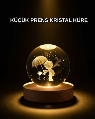 Hediye olarak alınabilecek en özel tasarımlardan biri olan bu Küçük Prens kristal gece lambası, zarif bir kutu içinde sunulur. Yılbaşı, sevgililer günü, anneler günü, doğum günü veya yeni iş hediyesi gibi pek çok özel gün için ideal bir seçenektir. Masif ahşap standı hem doğal hem modern bir görünüm sunarken kristalin içindeki 3D desen premium bir dokunuş oluşturur.
