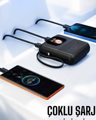 Hoparlör ve ekran özellikleri sayesinde bu cihaz, sadece bir şarj cihazı değil, aynı zamanda taşınabilir bir eğlence aracı olarak da kullanılabilir. Şık tasarımı ve çift fonksiyonu sayesinde hem bir powerbank hem de bir sağlık takip cihazı olarak ihtiyaçlarınıza cevap verir.