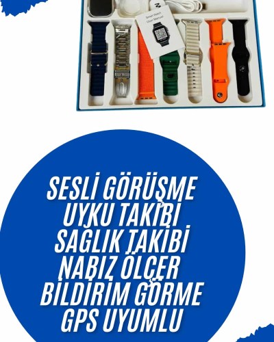 Akıllı Saat 7 Kordon Hediyeli Takvim Alarm Nabız Ölçer Bildirim Görme Sesli Görüşme