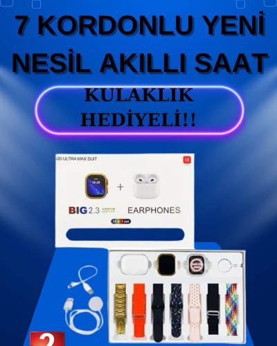 Akıllı Saat 7 Kordonlu Kulaklık Hediyeli Nabız Ölçer Uyku Takibi Sesli Görüşme