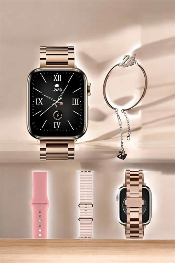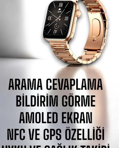 Uzun Pil Ömrü (2000-3000 mAh): Yüksek kapasiteli bataryası sayesinde gün boyunca şarj endişesi olmadan tüm özellikleri kullanabilirsiniz. Rose Gold Kasa Şıklığı: Modern ve zarif rose gold tasarımıyla günlük ve özel kombinlerinizi tamamlar. Adımsayar ve Kalori Takibi: Günlük aktivitelerinizi izleyin, yakılan kaloriyi hesaplayarak fitness hedeflerinize ulaşın. Uyku İzleme Fonksiyonu: Uyku düzeninizi analiz ederek daha kaliteli bir uyku deneyimi için önerilerde bulunur. Nabız ve Sağlık Sensörleri: Kalp atış hızınızı anlık olarak takip ederek sağlığınızı izler ve kayıt altına alır. Hassas GPS Teknolojisi: Konumunuzu doğru bir şekilde belirler ve açık hava sporlarında yön bulmanızı kolaylaştırır. Bluetooth Arama Özelliği: Akıllı saatiniz üzerinden gelen aramaları cevaplayabilir, eller serbest bir iletişim deneyimi yaşayabilirsiniz. Titreşim Bildirimleri: Gelen çağrı, mesaj ve uygulama uyarılarını sessiz ve etkili bir şekilde alın.Sağlık takibi, spor izleme ve günlük kullanım için ideal olan bu akıllı saat, zarif tasarımıyla teknoloji ve estetiği bir araya getiriyor.