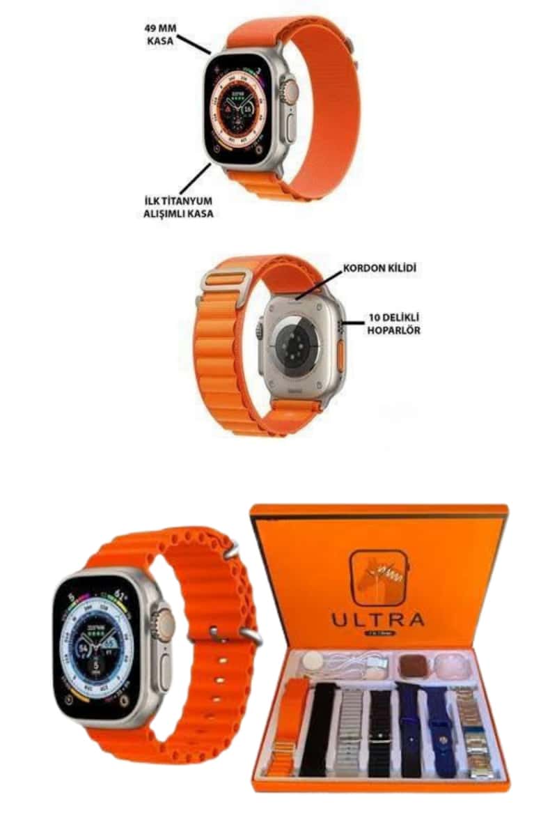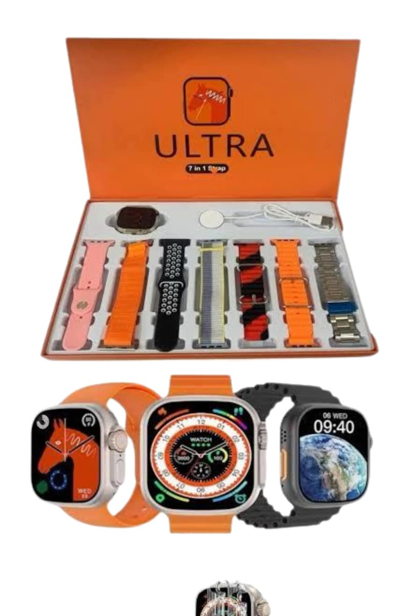 8 Ultra 7-in-1 Akıllı Saat: Bir saatin sunabileceği tüm fonksiyonları bir araya getiren bu şık akıllı saat, günlük hayatınızı kolaylaştıran birçok özellik sunuyor. 7 kordonlu tasarımıyla hem estetik hem de fonksiyonel bir tasarım sunarken, modern hayatın ihtiyaçlarına tamamen uyum sağlar.