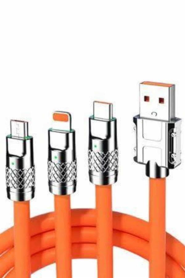 3 İn 1 Süper Hızlı Şarj Kablosu Android ve İOS Uyumlu Silikon Şarj Kablosu