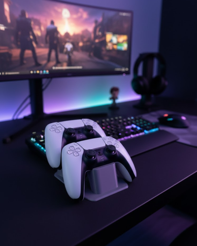 Oyun kumandalarının masa üzerinde dağınık durmasını engelleyerek daha temiz ve düzenli bir alan yaratır. Günlük kullanımda gamepad’lerin kolayca erişilebilir olmasını sağlar ve oyun sonrası düzeni korumaya yardımcı olur. İkili yapısı, birden fazla kumandayı tek noktada toplamak isteyenler için pratik bir çözümdür.