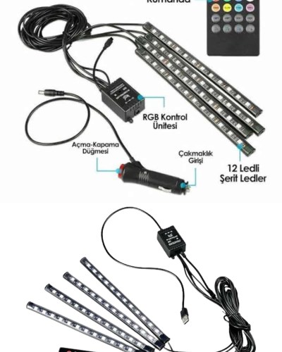 RGB Işıklı Araç İçi Aydınlatma Kumandalı 12’li Led Işık Renk Değiştirebilen