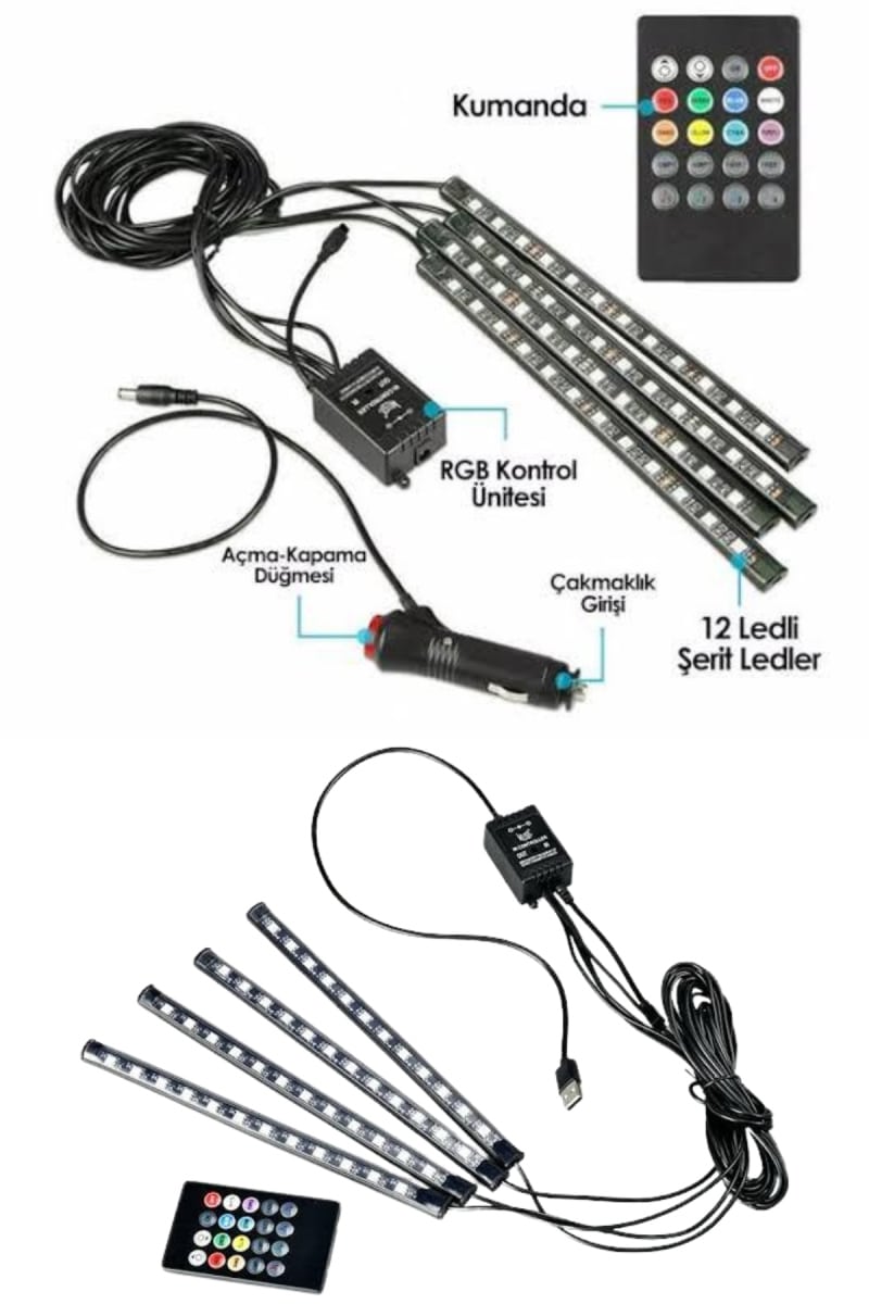 RGB Işıklı Araç İçi Aydınlatma Kumandalı 12'li Led Işık Renk Değiştirebilen