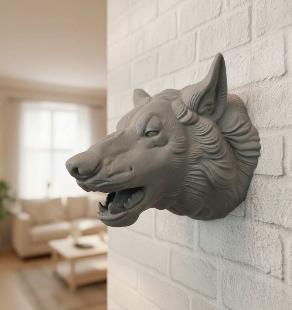 Duvara asılabilir yapısı sayesinde montajı oldukça pratiktir. Tek bir çivi veya vida ile kolayca sabitlenebilir. Yüzeyindeki üç boyutlu detaylar, özellikle kurt figürünü sevenler için gerçekçiliğiyle öne çıkar. Açık ağız formu, diş yapısı ve kürk çizgilerinin özenli şekilde modellenmiş olması, ürünün dekoratif değerini artırırken aynı zamanda karakteristik bir estetik sunar.